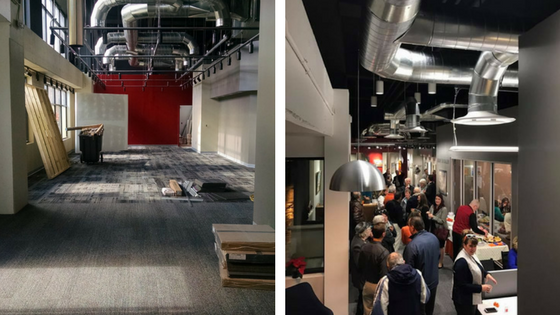Earlier this month, with much excitement, we reopened our Kent office. We couldn't think of a better way to start off 2017, as we celebrate our 70th Anniversary as a company. For Cutler, the opening of this space in revitalized downtown Kent holds high hopes and anticipation for yet another momentous year. Our new space, touting modern décor with pops of our signature Cutler orange, is similar to that of our Downtown Wooster, New Albany and Powell offices. Visitors walk into a space unlike any real estate office they've ever seen. What makes this office unique is that it shares space with Group Ten Art Gallery, a group of local co-op artists.   A before/after shot of our Kent office! Visitors can expect to be warmly greeted by the Stow office manager, Shirley Chimento and a smiling Administrative Assistant.  Our Realtors and guests are able to easily conduct business in an open concept work environment. To the left of the office entrance, visitors are engulfed into a world of eclectic works of local art. Art is not what typically comes to mind when thinking about a real estate office. However, in Kent the two spaces effortlessly collide into one wonderful space of creativity and business. Essentially at this office, once you sign the papers to purchase your new home you can then purchase a piece of art for your new home!   #CutlerLovesKent On behalf of Cutler Real Estate, we would like to thank the city of Kent, Mayor Fiala and Lori Wemhoff, Director of Kent Chamber of Commerce for celebrating with us in the Grand Reopening of our new office. The city of Kent has been an incredible location for Cutler Real Estate since 2005 and we truly appreciate the city for its ongoing support of our mission to simplify the complicated real estate transaction, while creating an exciting and enriching experience. Our Kent office sits at the corner of Erie and Haymaker nestled beside the Kent State University campus in the newly revitalized downtown Kent. The office is open daily from 8am to 5pm.
