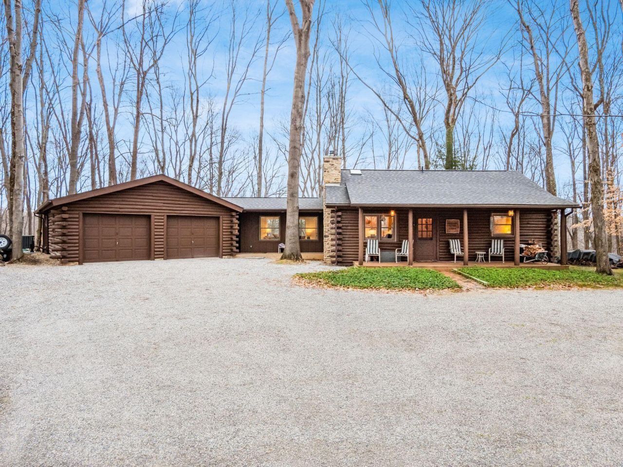 Agent/owner; Darling cabin that has been completely updated! New or newer: Amish kitchen cabinets, wood ceilings and beams, LVT flooring throughout, new windows, flooring, lighting, bathrooms, roof, electric, 1 new furnace and 2 new air conditioners (one furnace is older), new hot water tanks, pressure tank, etc!This charming home is on flat land and has a horseshoe drive. Very quiet, wooded lot. Hide A Way Hills is a gated community about 1 hour southeast of Columbus. (You MUST be called into the gate). Amenities include: 24/7 security, lending library, golf course, clubhouse, beach, disc golf, organic garden, ATV trail, shooting range, Lodge, pool, tennis and pickleball, workout facility! AGENT/OWNER