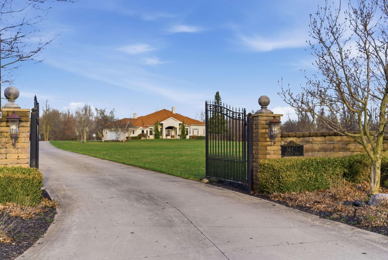 Discover the retreat you've been dreaming of???an exquisite custom gated estate nestled on nearly 7 acres of secluded, private grounds. This one-of-a-kind residence was masterfully crafted for refined living and effortless entertaining, featuring a picturesque pond with pavilion and a tranquil rear porch that gazes out over lush woods and a gentle stream.Inside, every detail has been intentionally curated. The chef's kitchen is a true showpiece, boasting dual islands, two ovens, double dishwashers, a touchless faucet, and an oversized refrigerator???perfect for hosting on any scale. Elegant living spaces include a formal living room, an expansive great room with a gas/wood-burning fireplace, a dedicated office, a formal dining room, and a sunlit eat-in area.French doors lead into the first-floor primary suite which is a sanctuary unto itself, offering a spacious sitting area with a gas/wood fireplace and a spa-inspired en-suite featuring heated floors, a heated-jet soaking tub, and a separate shower. Two additional first-level bedrooms with the second full bath provide comfort and convenience.The impressive lower level is designed for entertainment and relaxation, complete with a stylish kitchenette, a large recreation and theatre space with a gas fireplace, two egress bedrooms, the third full bath, a versatile flex room, abundant storage, and a crawl space.A generous 2+ car garage anchors the property, with ample room to expand should you desire. This is luxury, privacy, and craftsmanship at their finest.