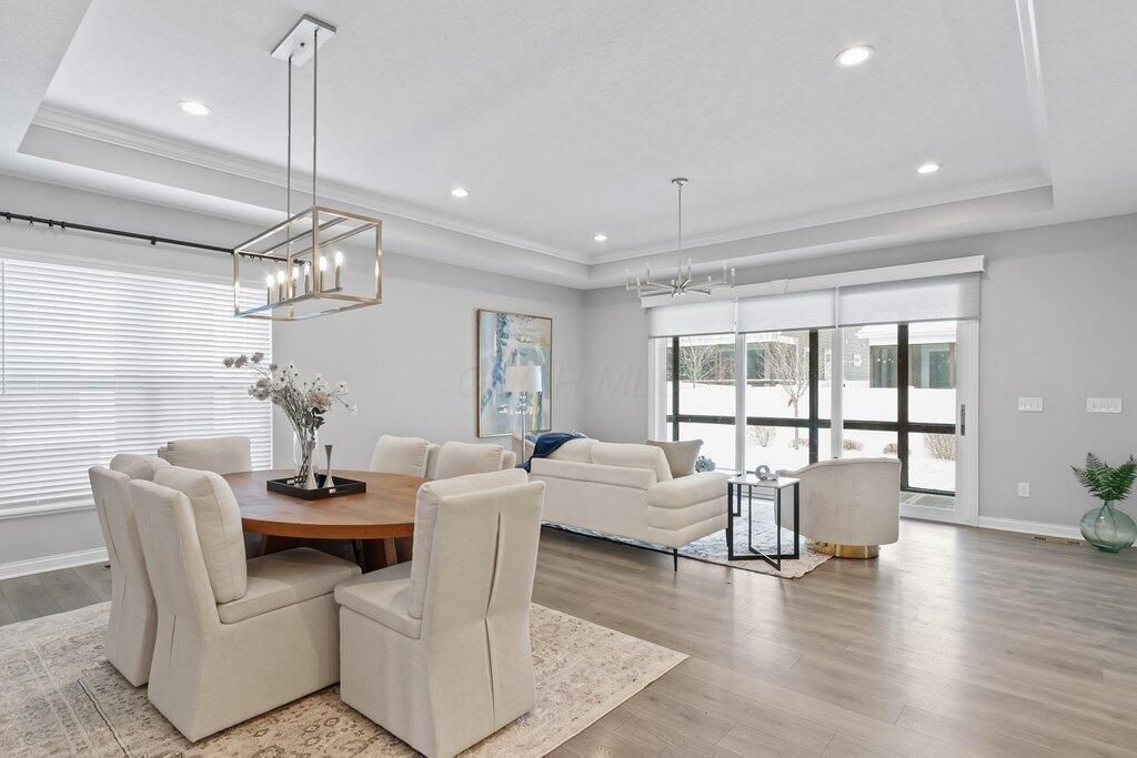 Price improvement set to move you right in! Experience resort-style living in Ohio within this sought-after community featuring a clubhouse, pool, scenic walking paths and charming streetscapes. This rare 4-bedroom Retreat at Dustin home offers three finished levels of luxurious, flexible living, perfect for today's lifestyles--whether you need home offices, guest suites, entertainment space, or multi-generational living.A welcoming covered front porch overlooks tranquil green space and sets the tone for the thoughtfully designed interior. The open main level features two bedrooms, a vaulted great room, and a kitchen designed for gathering with a large island and adjoining dining area. A standout feature is the spacious screened porch with a folding glass wall system, seamlessly blending indoor and outdoor living.The finished lower level expands the home's versatility, offering a built-in bar with beverage and wine refrigerators, a bedroom with egress window, a full bath, and an expansive recreation area ideal for entertaining, working, or relaxing--plus generous storage space.The upper level adds even more flexibility with a bright, spacious flex room, an additional bedroom, and a full bath--perfect for guests or private retreats.Out back, enjoy a fully fenced yard providing privacy and room to unwind. With space for everyone and move-in-ready convenience, this exceptional home delivers comfort, style, and the feel of everyday vacation living. Close proximity to the Northeast Bike Leisure trail and Genoa's new Boardwalk