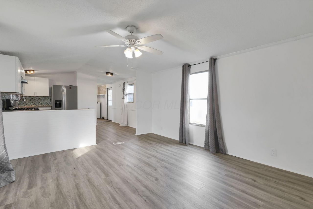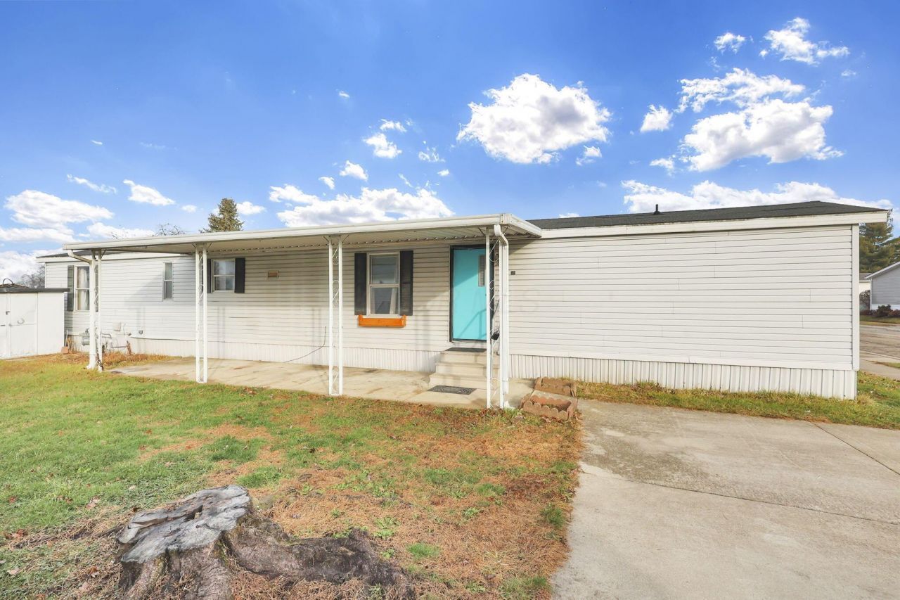Welcome to Shenandoah Commons! Charming & inviting single-story mobile home boasts fantastic curb appeal, featuring clean light-colored siding & a welcoming covered porch in the desirable Hamilton school district! Enjoy the bright, airy living room w. large windows that bathe the space in natural light, complemented by stylish laminate flooring & a ceiling fan for comfort. The kitchen has been updated, showcasing modern white cabinetry paired w. a stunning blue mosaic backsplash! Complete w. stainless steel appliances & ample counter space, this kitchen is perfect for cooking & entertaining! The cozy bedrooms feature plush carpeting & soft, neutral tones, perfect for personal touches. Vibrant full bathroom w. modern fixtures, creating a fresh atmosphere that invigorates your daily routine! Step outside to discover a spacious grassy yard surrounded by beautiful greenery, offering a serene oasis for outdoor activities or potential landscaping enhancements. Clean lines, well-appointed finishes, & a fantastic location your options for entertainment, food, & shopping are endless nearby while keeping the peace & quiet at home! See A2A; HOA fee advertised is the lot rent.